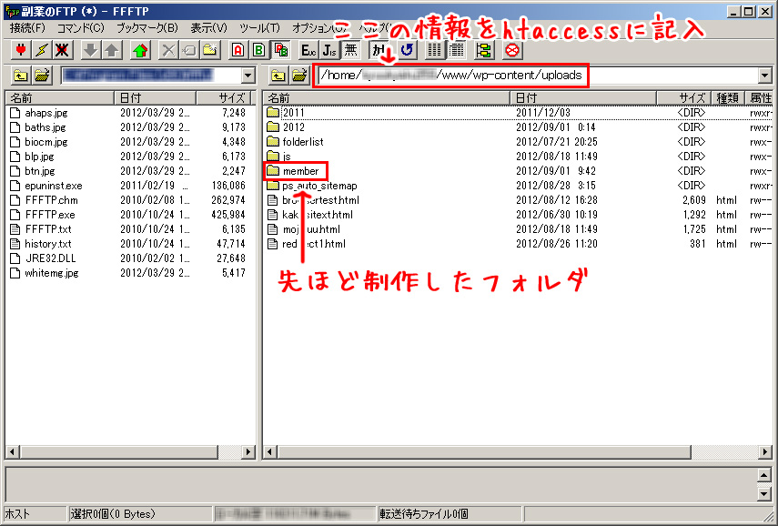 先ほどのhtaccessの中に記入する情報はFTPの上のアドレスをそのままコピーするだけで問題ありません。