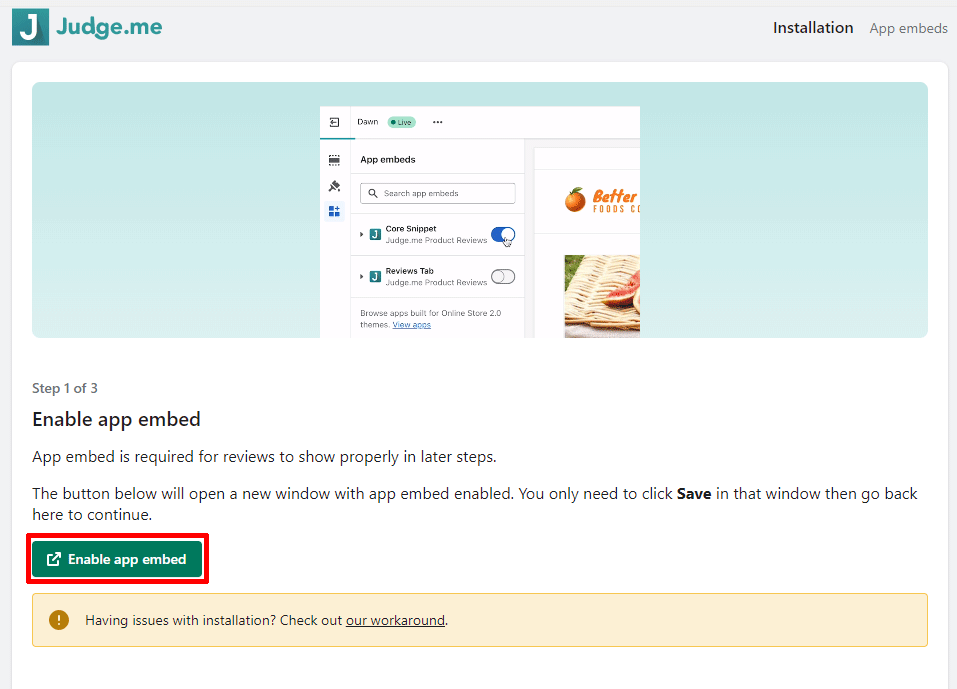 Enable app embedをクリックします。