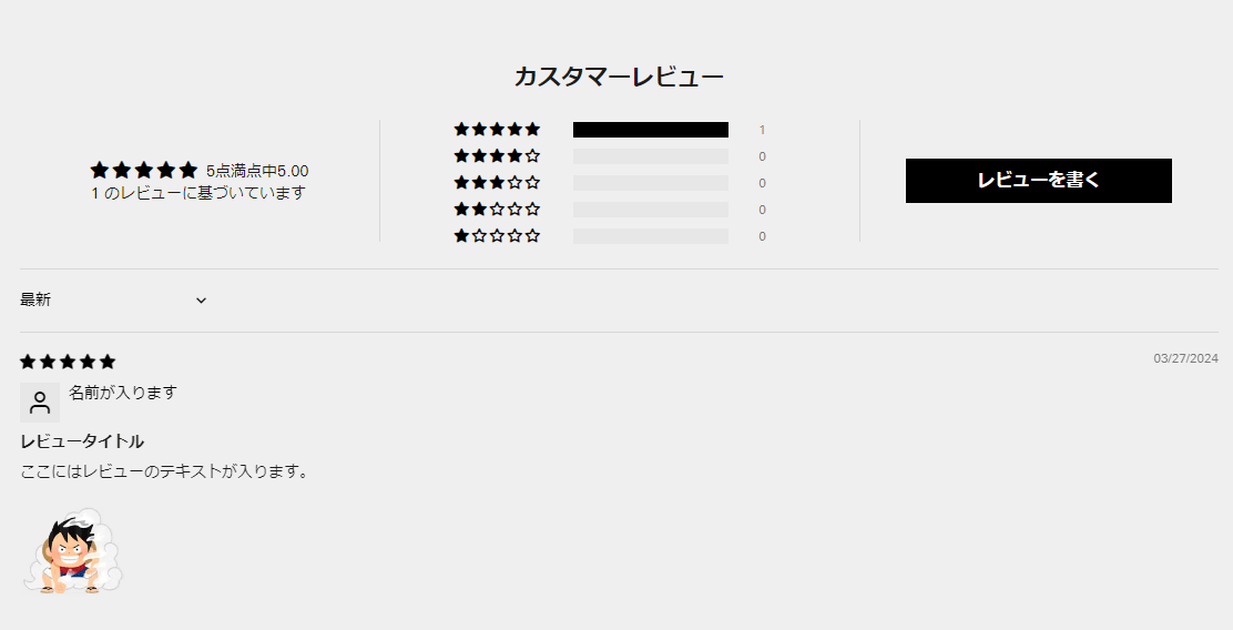 保存をすると、このようにカスタマーレビューが表示されるようになりました。