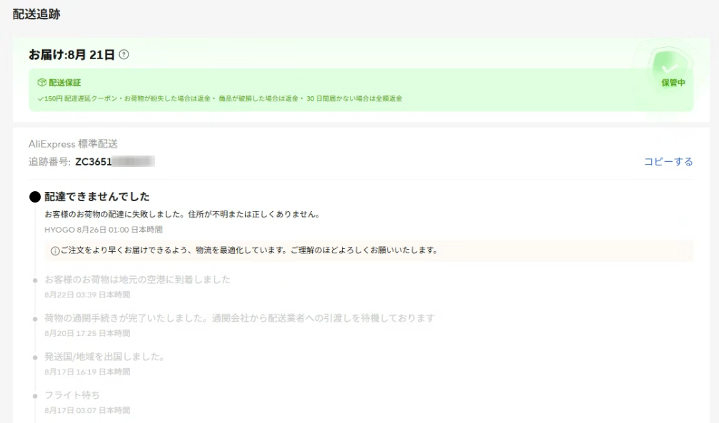- aliexpress(アリエク)の30日間の配送保証は嘘