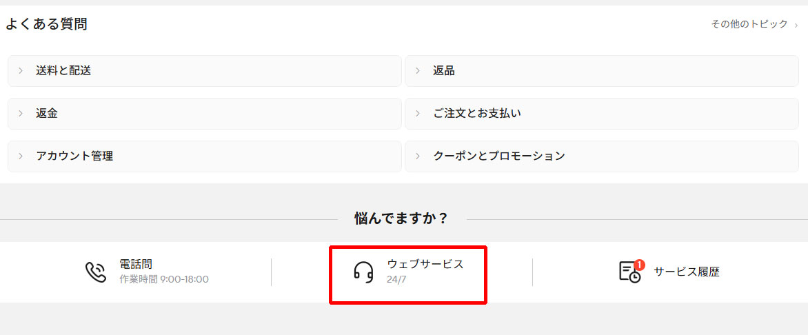 ページ下のほうに電話やチャットで問い合わせができるので、最初は電話をしましたが証拠が残せないのでウェブサービスのほうが良いかもしれません。