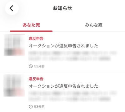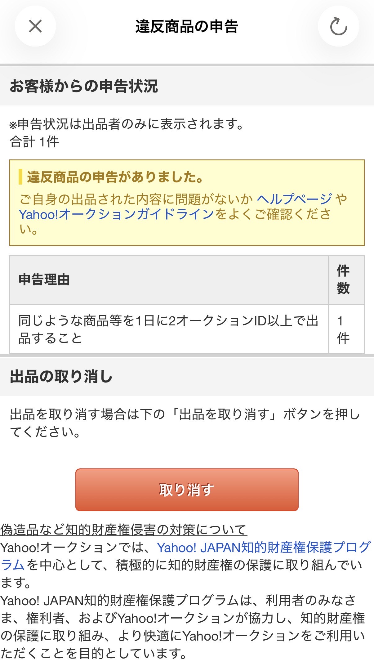 たまにですが、私もヤフオクで違反申告をされるケースがございます。