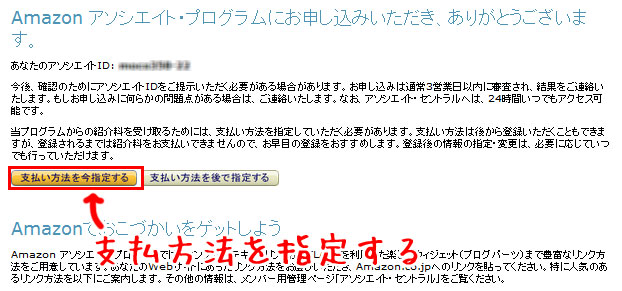 こちらの画面が表示された場合あ「お支払方法を今指定する」をクリックしてください。