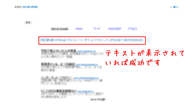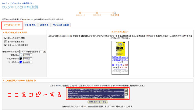 先ほどのリンクを作成の先の、テキストのみをクリックして、その下に表示されている内容を同様にコピーして下さい。