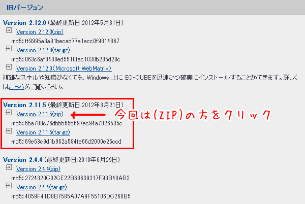 この中にある「旧バージョン」内のVersion 2.11.5(zip)をクリックして下さい。
