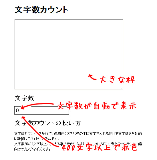 これは自分がこんなのがあれば良いなぁって思っている文字数カウントを制作してみました。