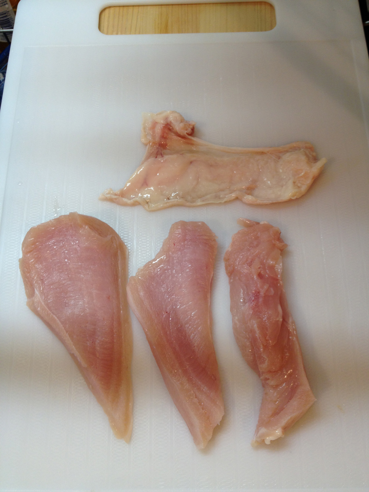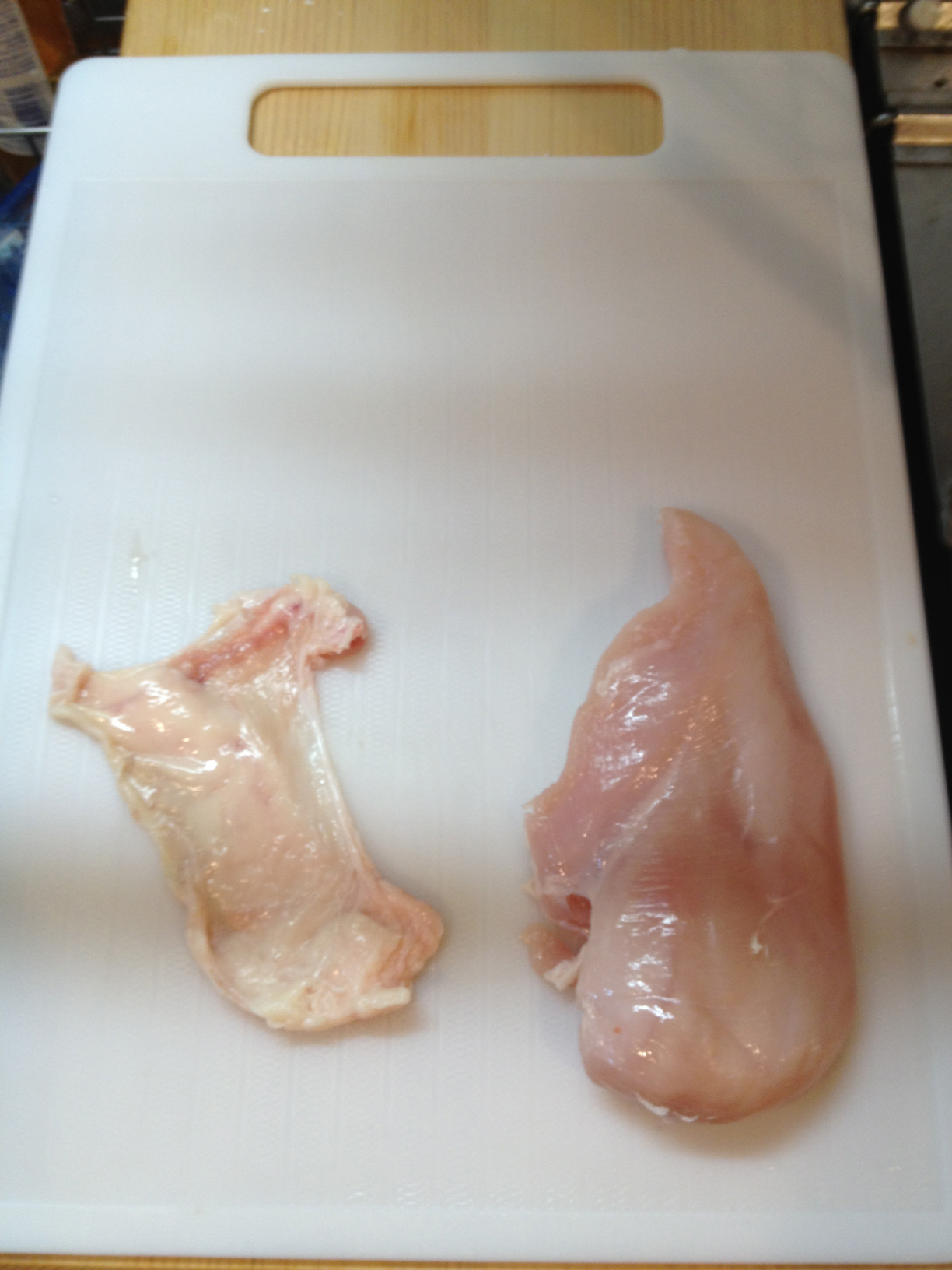 まずは、鶏肉の胸についている皮を全てはがしていきます。