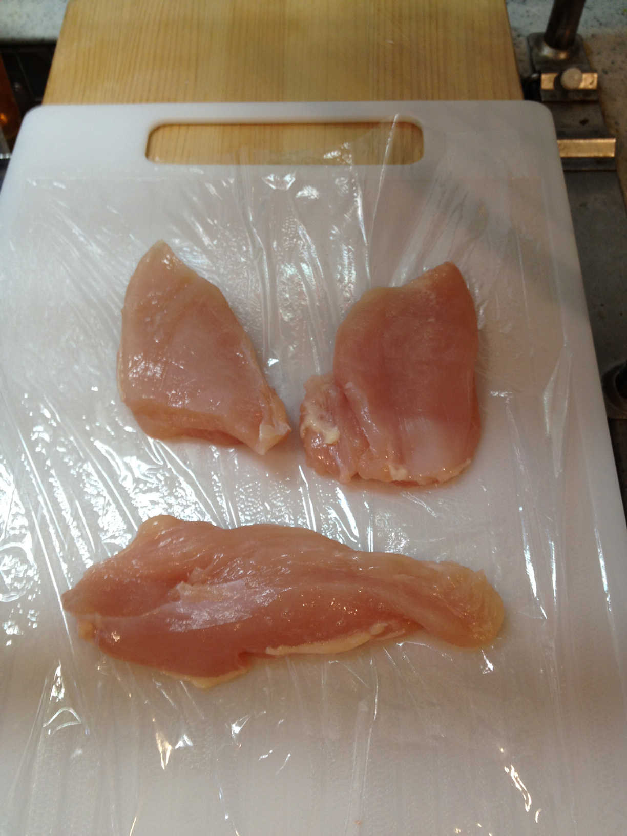 鶏肉のももだと、少し柔らかいのでこれが出来ない。そう、それが一つのポイントです。