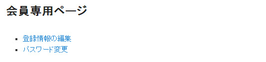 このようになります。もし、会員ページ専用に新着情報などがある場合はこのページにテキストなどを入れるとログイン時に見せたりする事が可能です。
